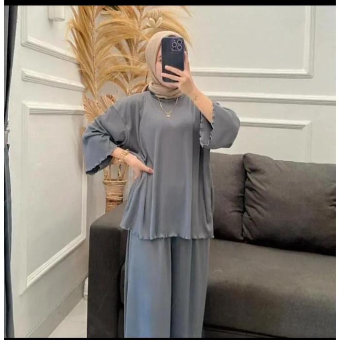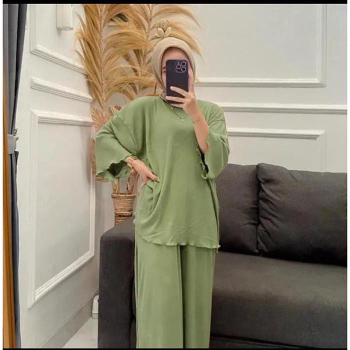 LOREN SETELAN RIB KNIT PREMIUM TEBAL - DENIM, ALL SIZE