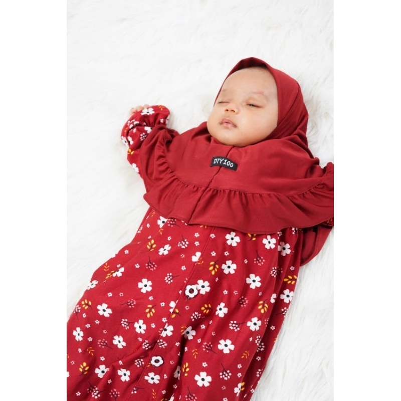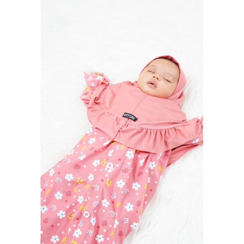 Dty100 Dress Bayi Perempuan 0-4 Bulan 6-12 Bulan 12-18 Bulan Free Hijab Kancing Full Aktif
