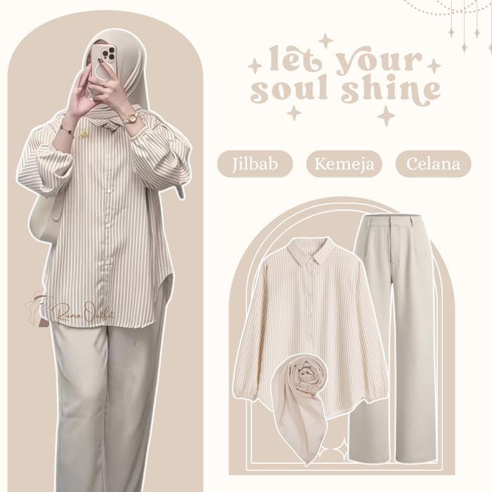 ONE SET WANITA REMAJA TERBARU KEMEJA SALUR CREAM - CELANA KULOT - JILBAB OOTD SETELAN HIJAB CASUAL RO75N - ONE SET 3IN1