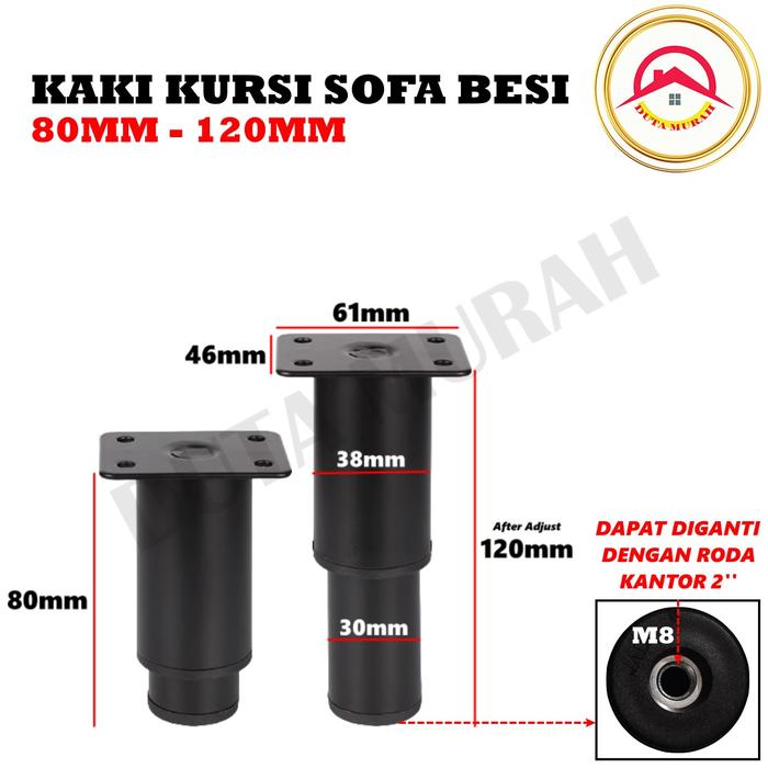 8-25CM KAKI SOFA KURSI TEMPAT TIDUR FURNITURE FOOT ADJUSTABLE KAKI PENYANGGA BALOK KAKI NAKAS BESI - KAKI SOFA 80MM