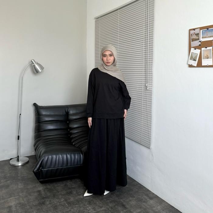 ROSSY COMBED SKIRT | ONE SET COTTON COMBAD 24S | SETELAN ROK | ALYATTIRE - BLACK, S/M