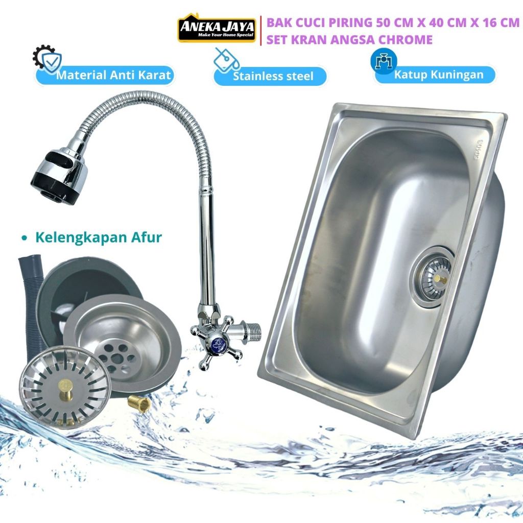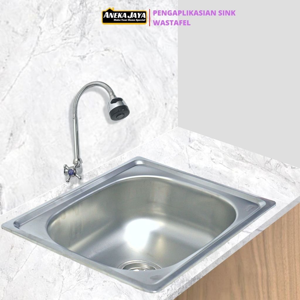 PAKET BAK CUCI PIRING FREE AFUR + KRAN FLEKSIBEL CUCI PIRING KITCHEN SINK 50 X 40 CM MATERIAL STAINLEES TEBAL