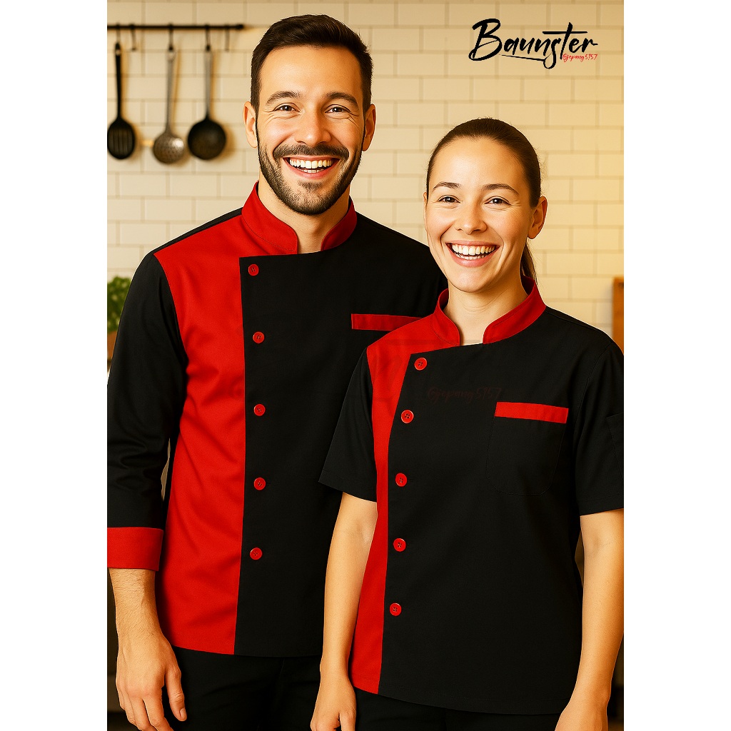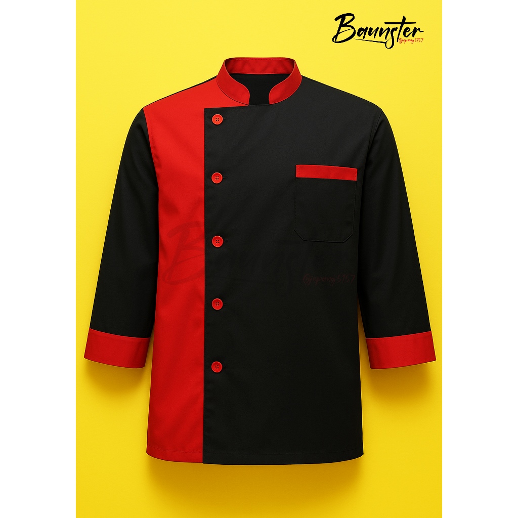 Srm Baju Chef Kombinasi Hitam Dan Merah Seragam Chef Unisex Bahan Drill Dua Warna