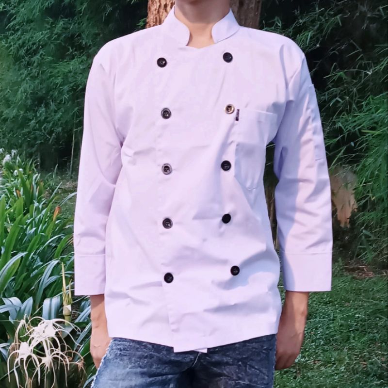 Srm Baju Koki Polos Simpel / Chef Work Body Fit Unisex Bahan Drill Int Size