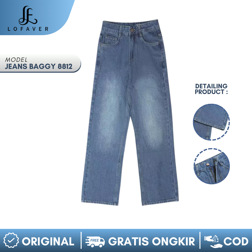 Lofaver - Highwaist Regular Jeans 8812 Celana Panjang Wanita HANGOUT