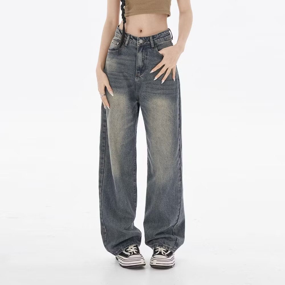 Celana Jeans Wanita Baggy Oversize Loose High Waist Wide Leg Korean Look Kekinian biru retro Vintage