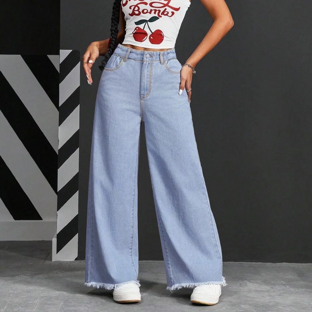 Celana Wanita Terbaru 2025 Denim Premium Plus Size Fit 95 KG Baggy Jeans Straight Wanita Loose Pant Wide Leg Model Kekin