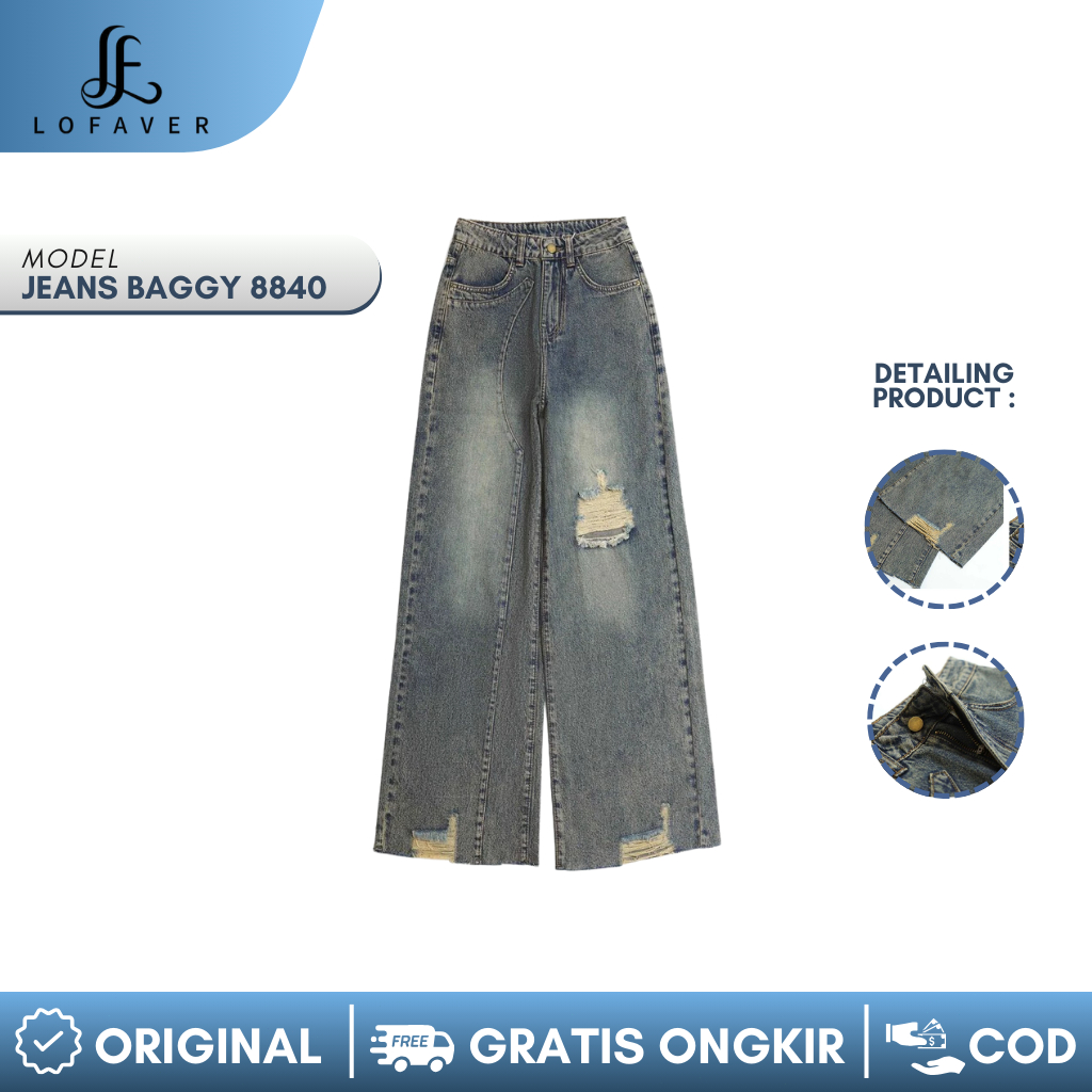 Lofaver - Highwaist Baggy Loose 8840 Celana Panjang Wanita HANGOUT