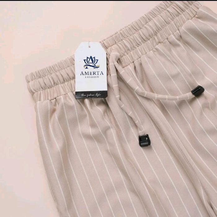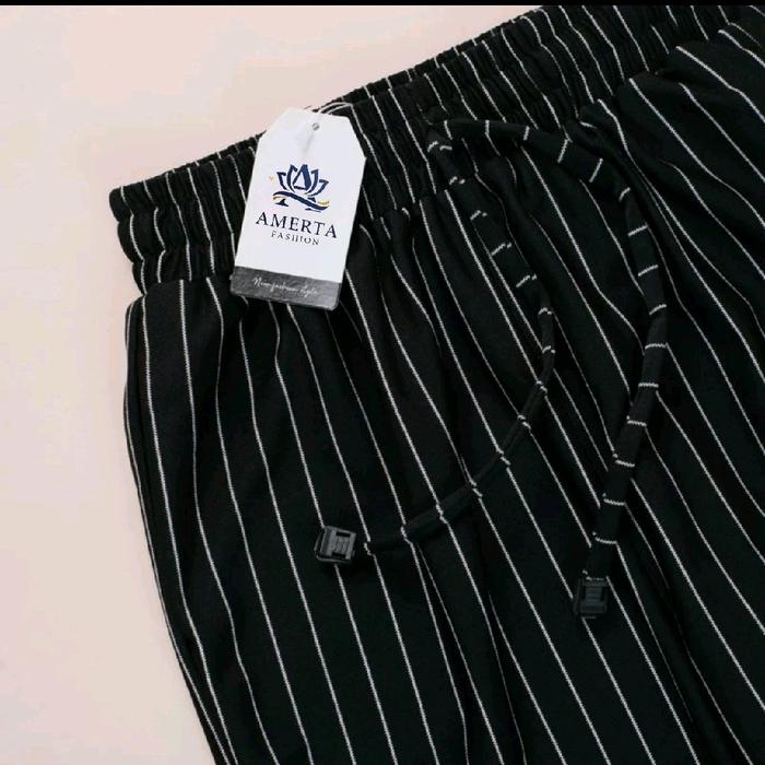 AMERTA - EVERYDAY PANTS - CELANA KULOT STRIPE BANGKOK | CELANA WANITA KEKINIAN | CELANA PANJANG FORMAL CASUAL LOOSE BASIC - HITAM, STARDAR BB 40-52 KG