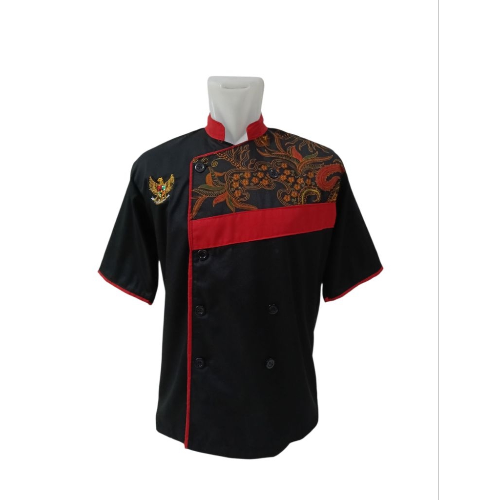Baju Chef Batik Kombinasi Merah