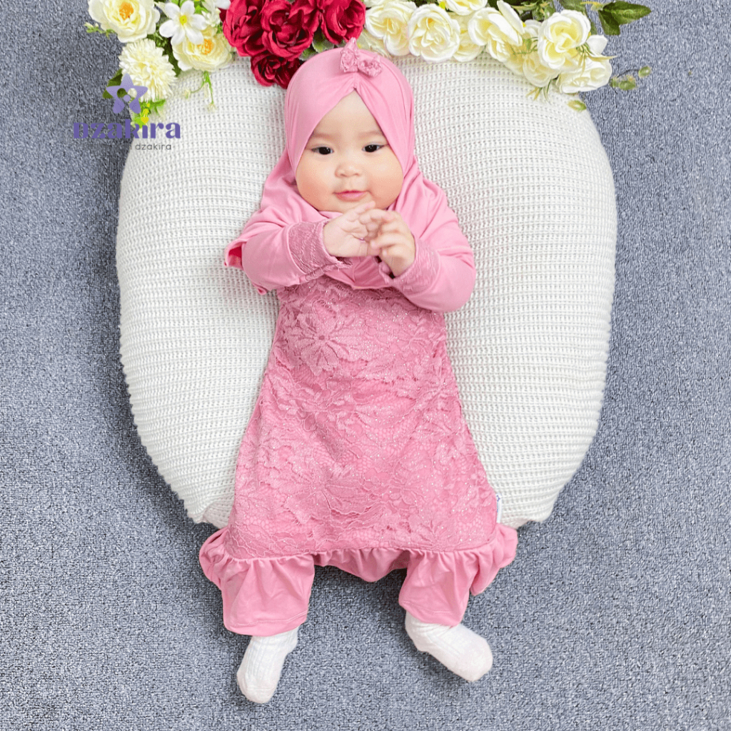 Gamis Bayi 0-2Thn Brukat Khalisa Dusty Pink Jersey Twist Premium Original By Dzakira