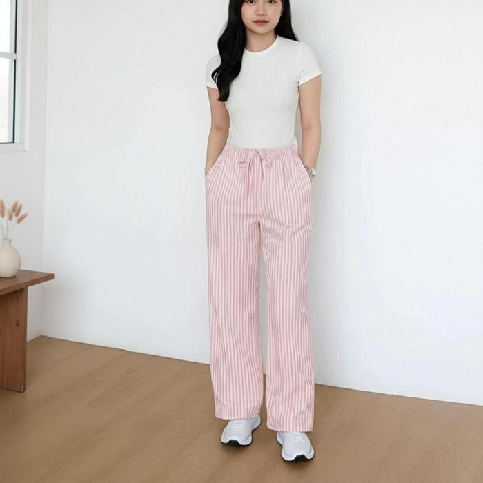 KENNY PANTS - EVERYDAY PANTS - STRIPE PANTS - CELANA SALUR KULOT JUMBO WANITA MOTIF SALUR PANJANG BIG SIZE - HITAM
