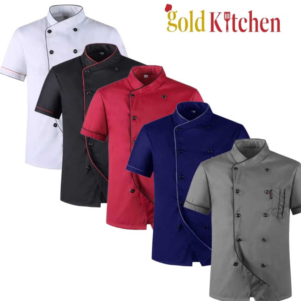Baju Koki Chef Jacket Lengan Pendek Pria Wanita Bahan American Drill