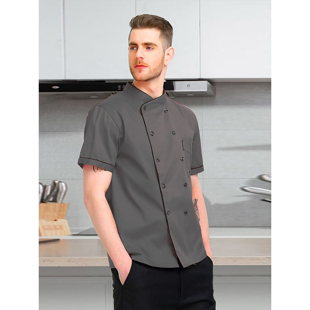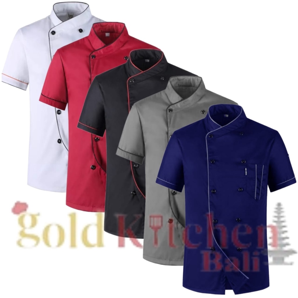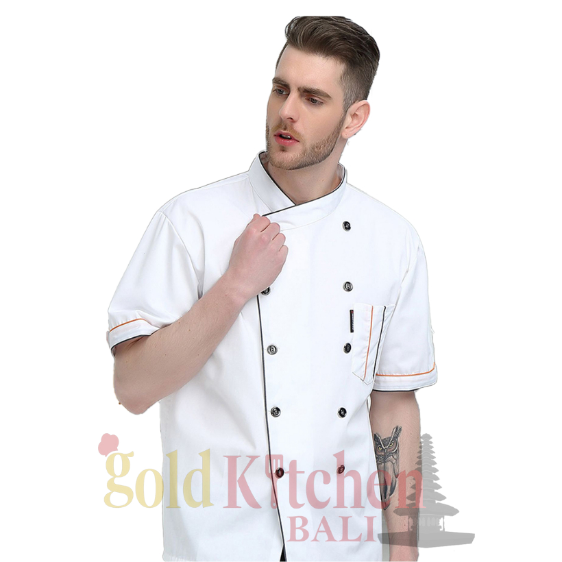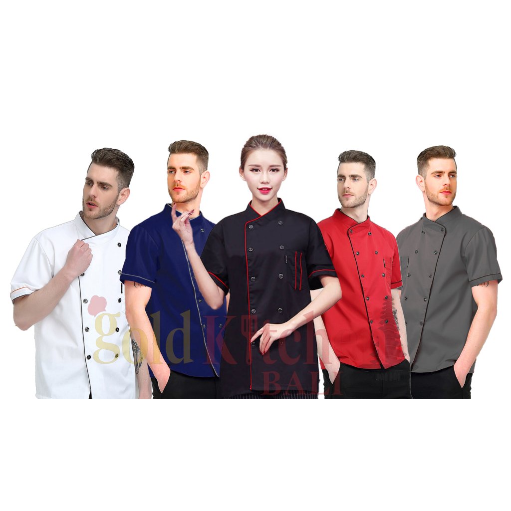 Chef Jacket Baju Koki Lengan Pendek Pria Wanita Bahan Drill Model Mandarin