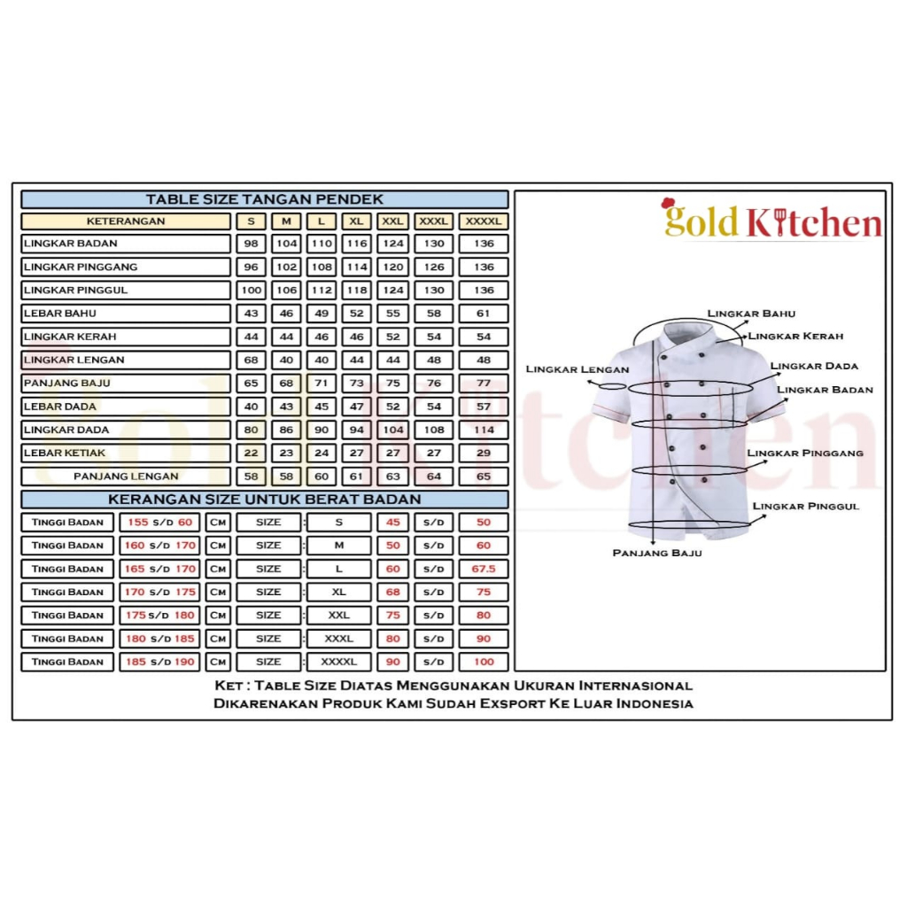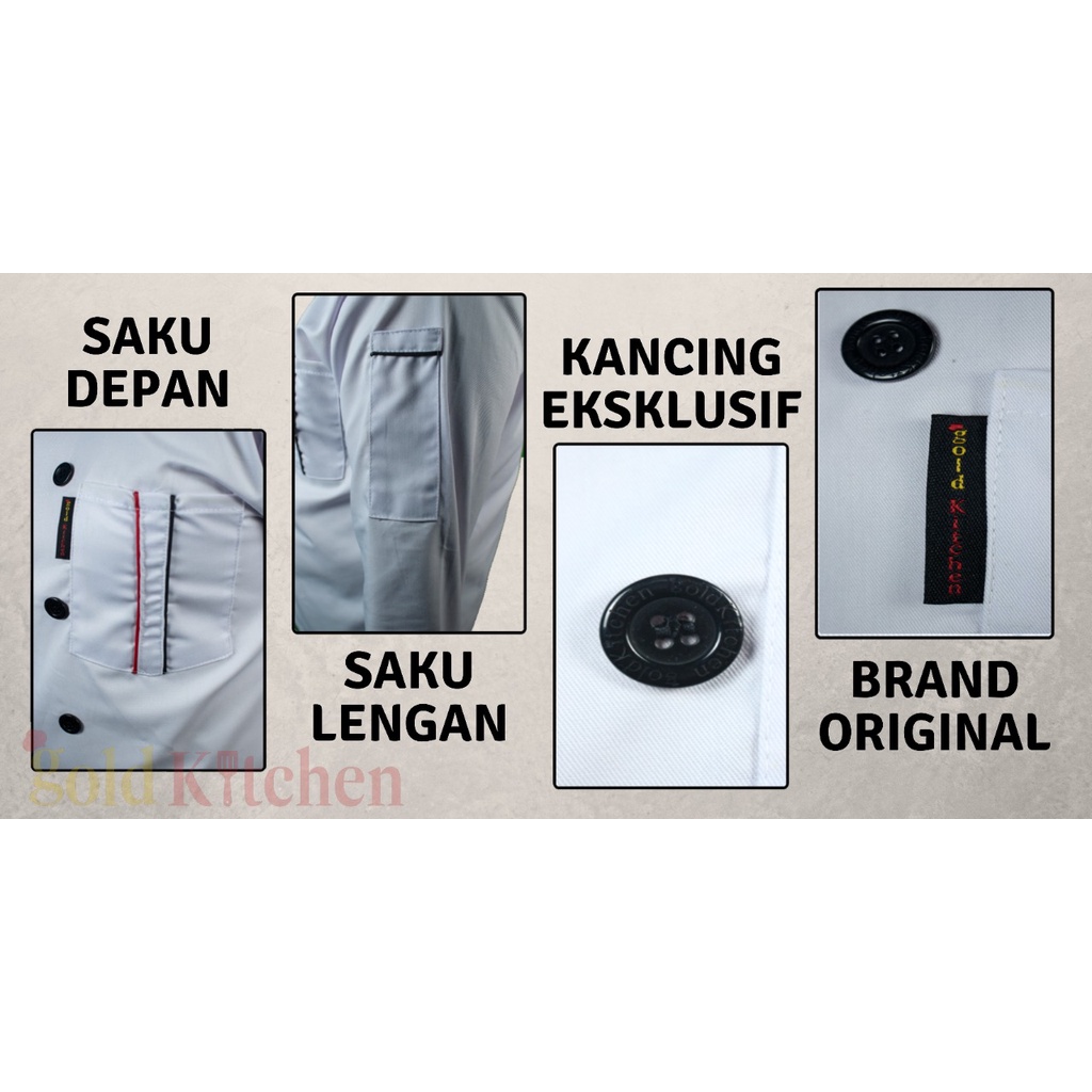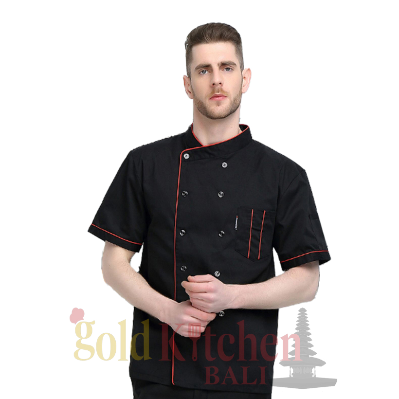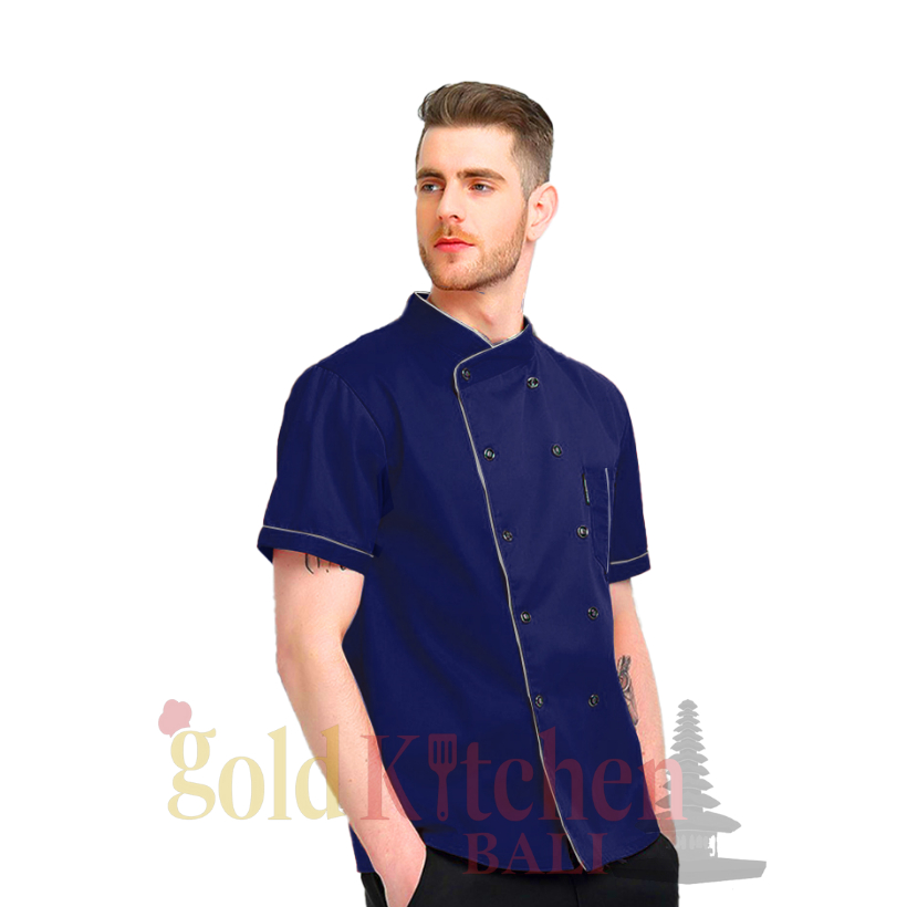 Chef Jacket Baju Koki Lengan Pendek Pria Wanita Bahan Drill Model Mandarin