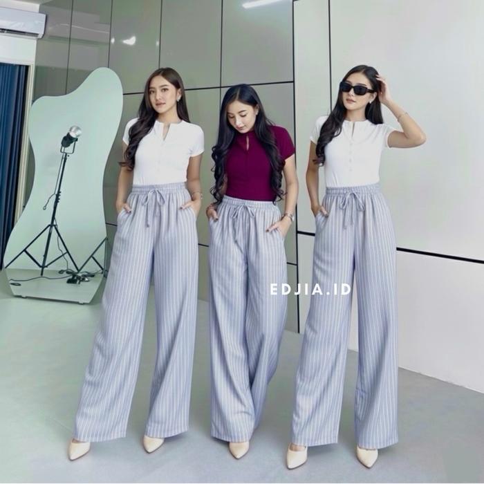 EVERYDAY PANTS - STRIPE PANTS BANGKOK - CELANA PANJANG WANITA BAGGY - CELANA KANTOR KULIAH MOTIF GARIS KULOT PINSTRIPE - CELANA FORMAL KATUN CITY SALUR - HITAM, STANDAR