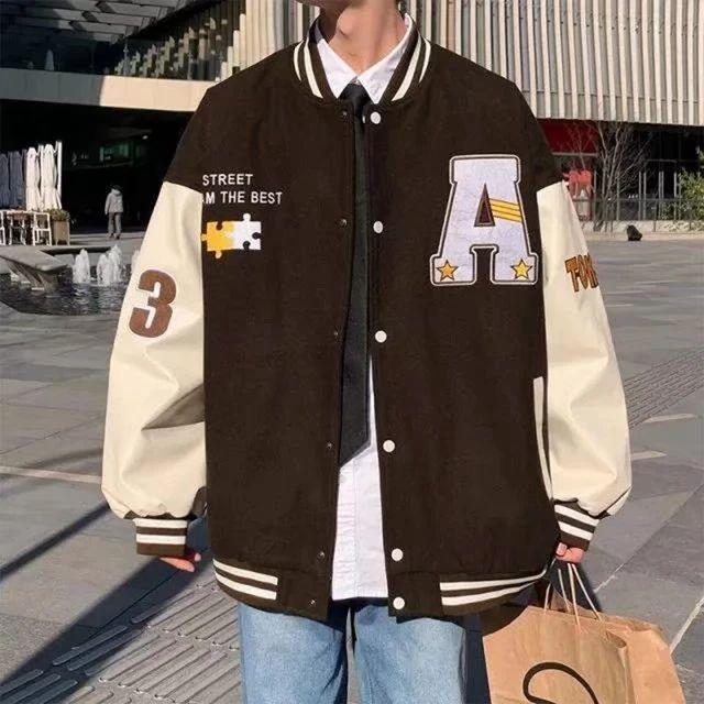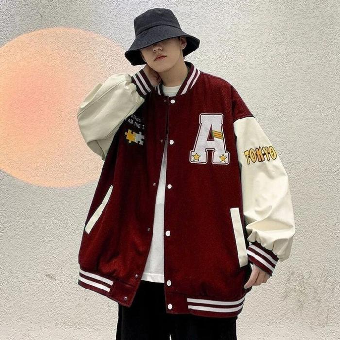 S - XXXXXL 6XL JAKET VARSITY BASEBALL JUMBO PRIA WANITA BIG SIZE A LOGO INISIAL I AM BEST JAKET VARSITY BISBOL KANCING BOMBER OVERSIZE KOREAN STYLE - HITAM-PUTIH, S