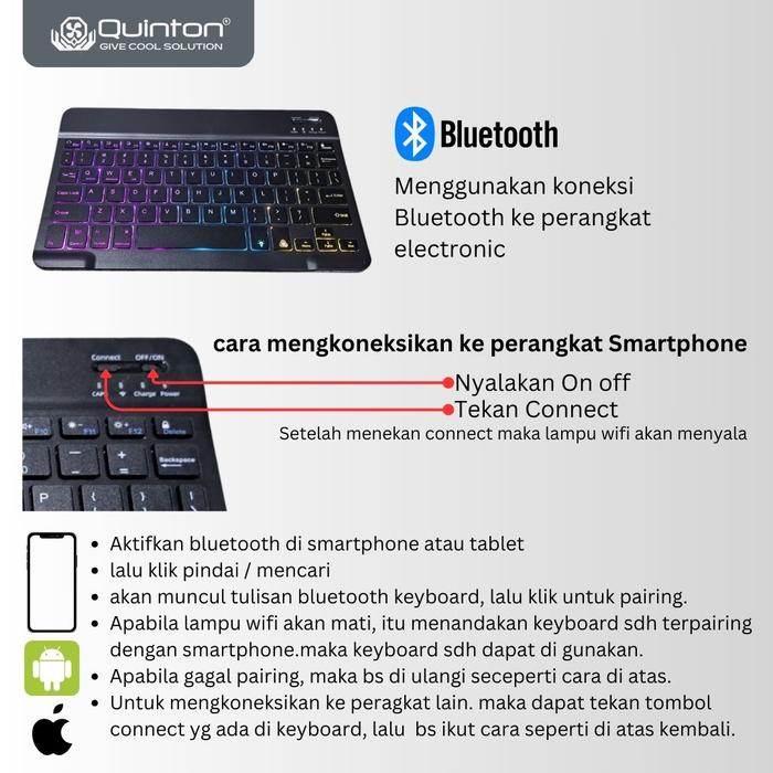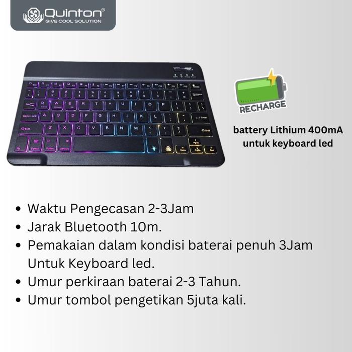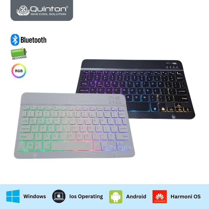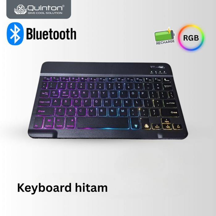 Keyboard Wireless Bluetooth 10 Inch recharge slim – LED RGB untuk Laptop HP Tablet & Smart TV - Hitam