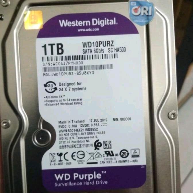 Hdd/Hardisk 35 internal 1TB Wd Purple FOR Cctv