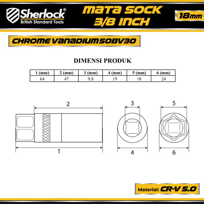 Mata Sock Kunci Busi 3/8 " Drive x 18 mm Spark Plug Socket Sherlock - 18 MM