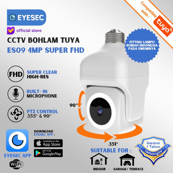 EYESEC CCTV Bohlam 4MP FHD PTZ E27 Komunikasi 2 Arah PTZ Smart Kamera Wifi CCTV TUYA