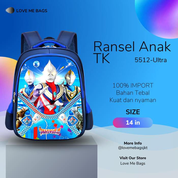 LMB Tas Anak Sekolah Laki Laki TK Import Bahan Nilon Premium Karakter Superhero Bagian Depan Gambar