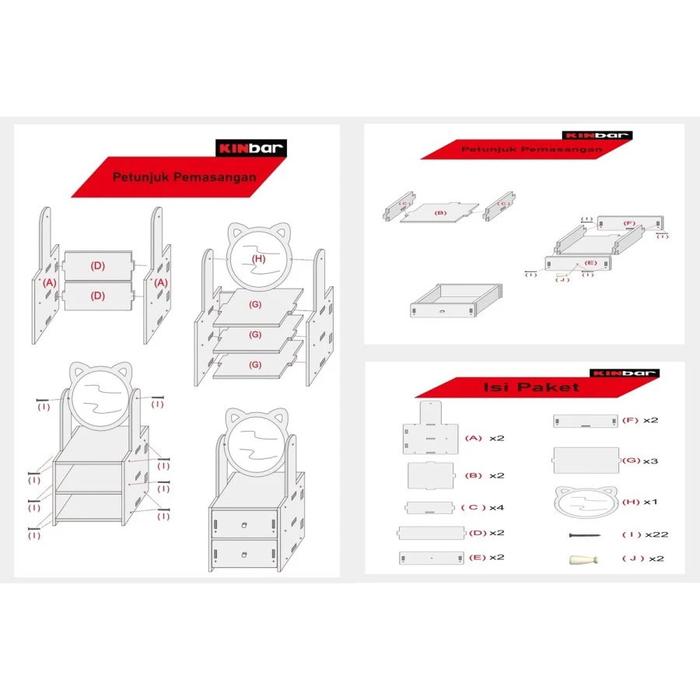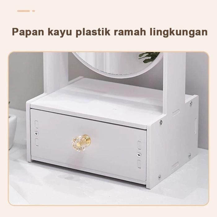 Rak Kosmetik Cermin Telinga Kucing 2 Laci Vintage WPC Rak Make Up Mini Skincare Tahan Air Lemari Hias Kecil Storage