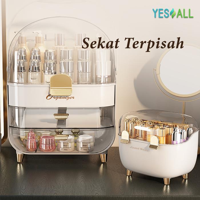 YESALL Rak Kosmetik & Aksesoris – Tutup Transparan Sekat Rapi Bisa untuk Meja Rias & Kerja - Rak Putih 3m45