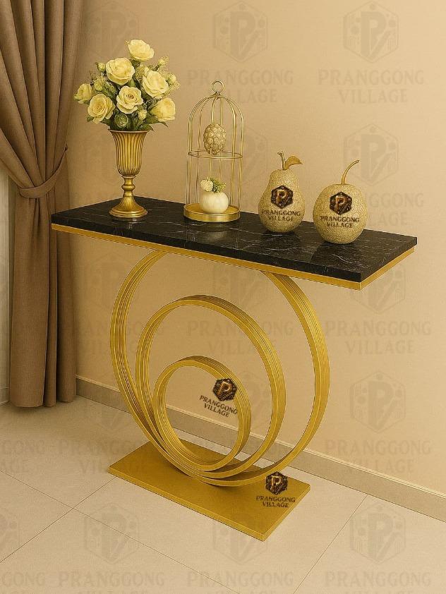 MEJA CONSUL RING BULAT / MEJA HIAS Besi Marmer Table Furniture - Marmer Hitam g0l6