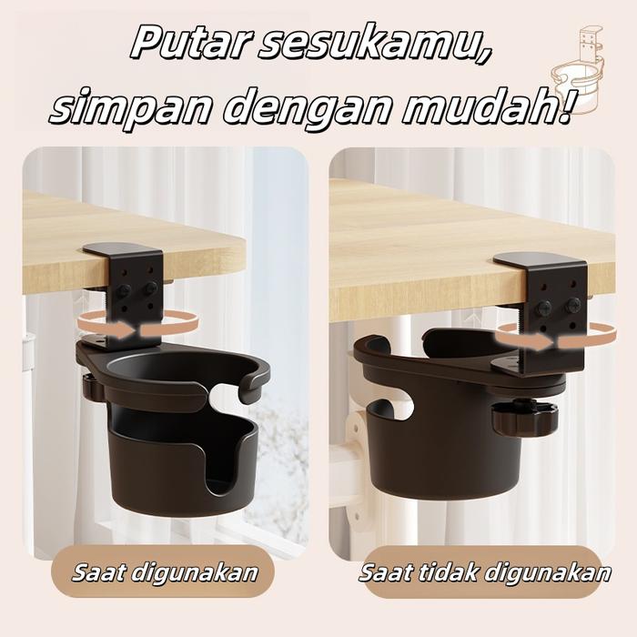 Tempat Gelas Dan Botol Jepit Meja Rak Cangkir Tanpa Bor untuk Meja Kantor Dapat Diputar