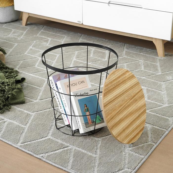Informa Toby Meja Tamu Dengan Penyimpanan - Hitam Meja Samping Kopi Rak Buku Keranjang Majalah Tempat Penyimpanan