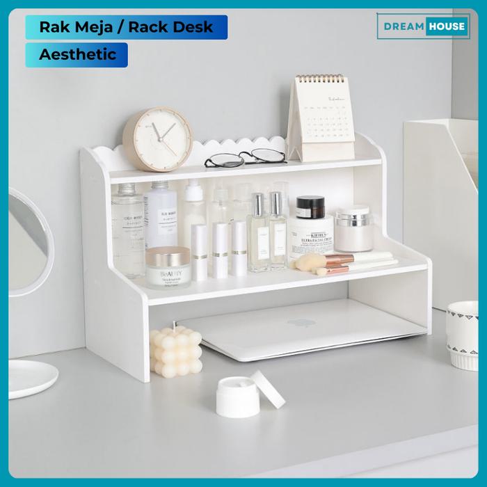 Rak Meja Aesthetic Rack Desk Organizer Rak Meja Tempat Penyimpanan Buku Make Up Serbaguna - Rak Dekstop Meja