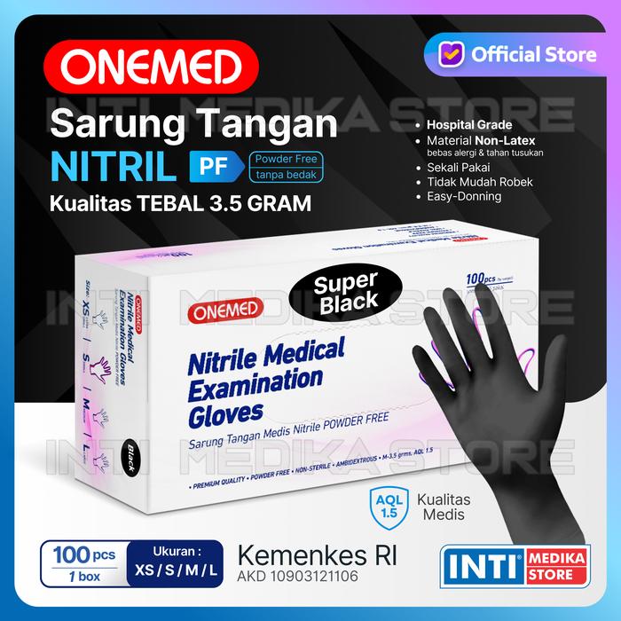 ONEMED - Sarung Tangan Nitril BLACK POWDER FREE Tanpa Tepung | Nitrile Examination Gloves HITAM PF - XS