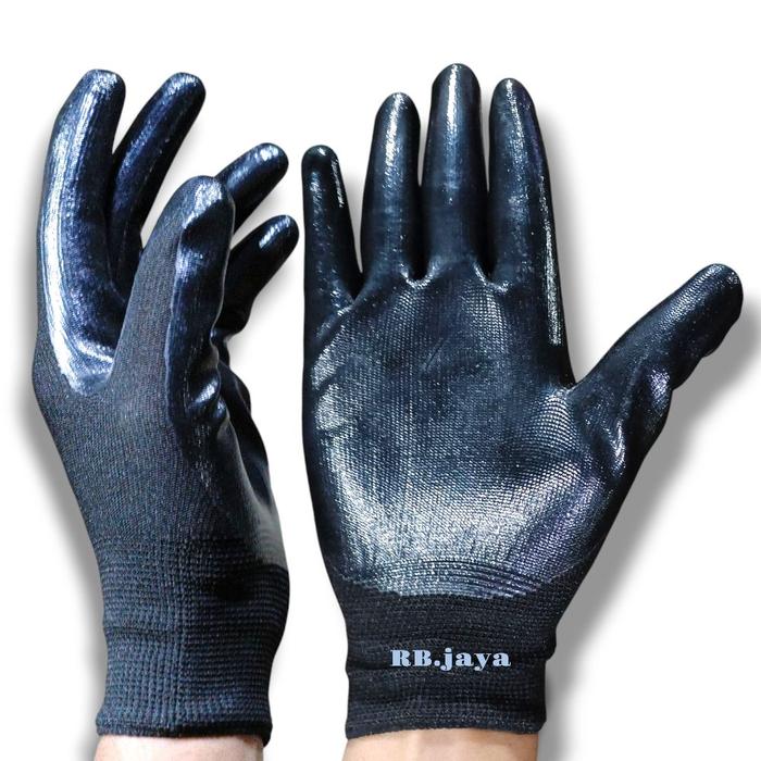 promo 3 & 6 pasang sarung tangan Kerja Safety karet leater waterproof anti potong - hitam 3 pasang