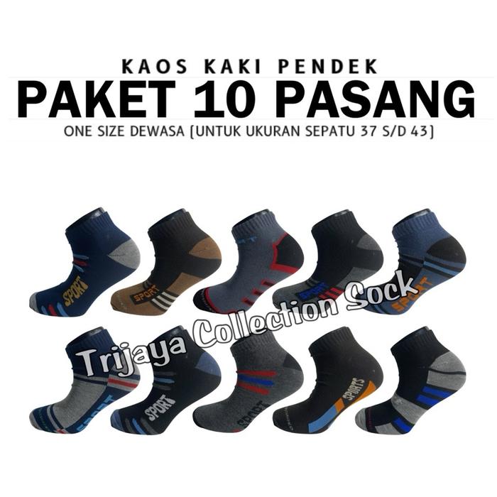 Paket 10 Pasang Kaos Kaki Pendek Sport Pria Wanita Dewasa / Kaos Kaki Semata Kaki Olahraga Unisex - Mix Warna 10 Pasang