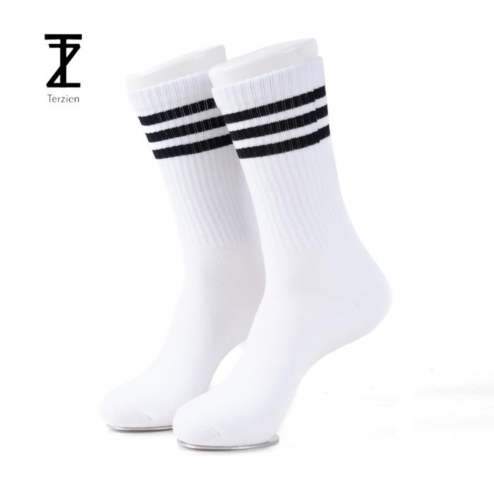 Terzien - Kaos Kaki Panjang Motif Strips Pria Wanita Warna Putih - A03