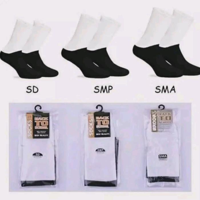 (grosir)12pasang/1lusin kaos kaki sekolah hitam putih sd smp sma - SD hitam putih 12 pasang