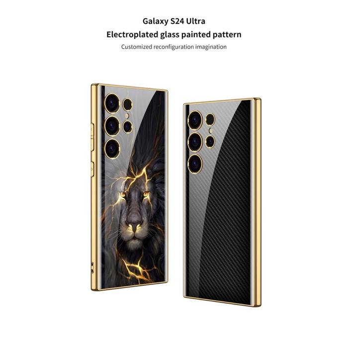 Case Samsung Galaxy S24 Ultra Plus 2024 Hardcase GKK Original Marble Pattern Luxury Cover Case - gold line white S24
