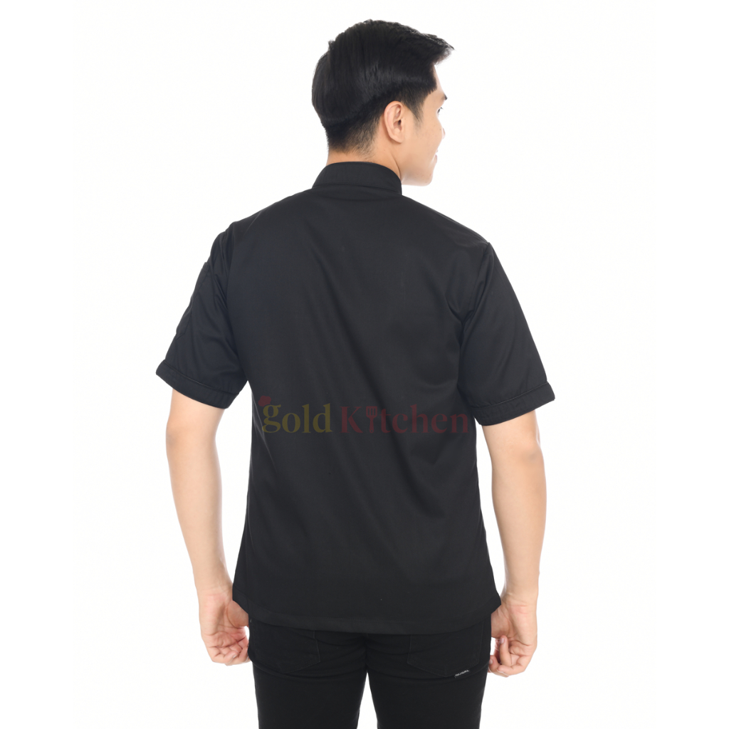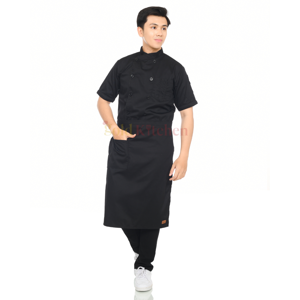 Chef Jacket Kemeja Kerja Baju Koki Pria Wanita Lengan Pendek Panjang Bahan Drill Model Mandarin