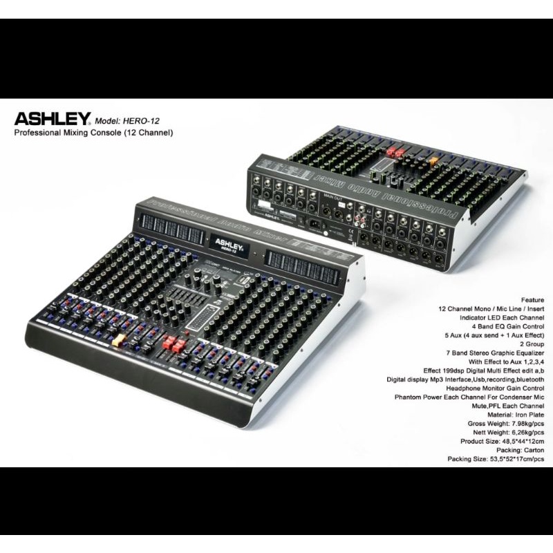Mixer Audio Ashley HERO 12 HERO12 12CH USB Bluetooth Sound Card Original 12 Channel Ada Compressor