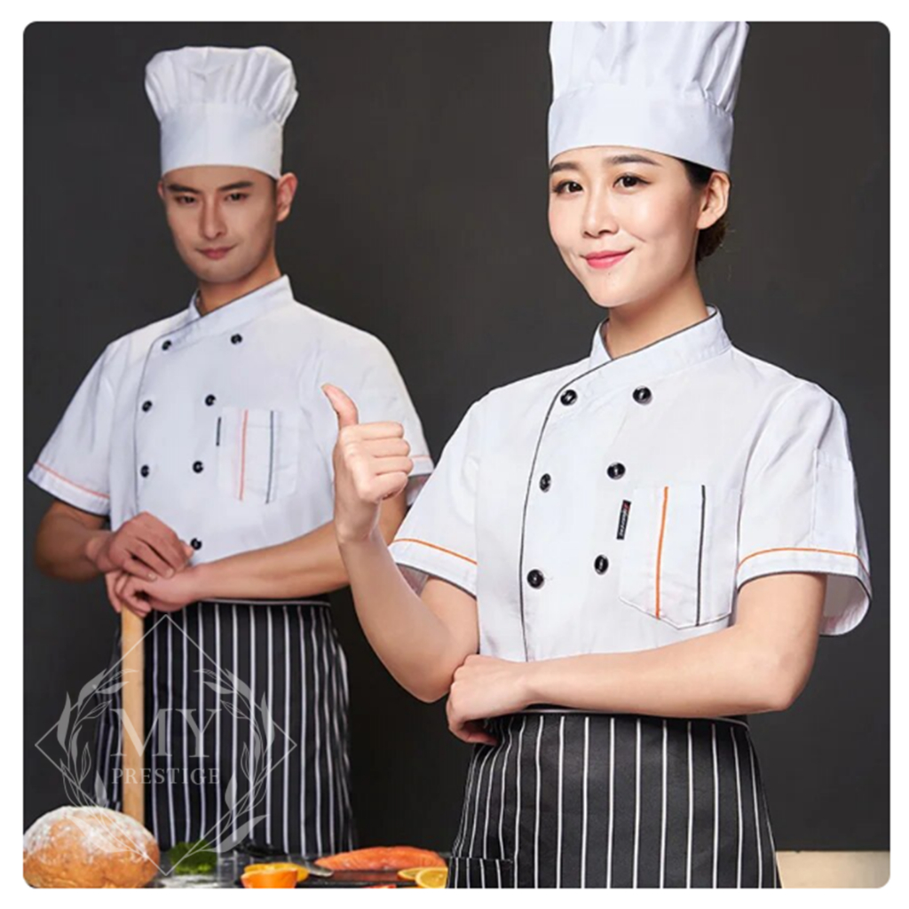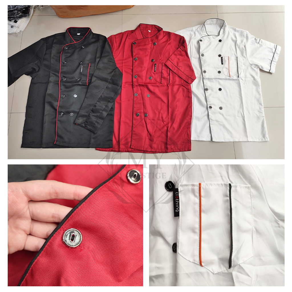 Baju Seragam Koki Chef Lengan Pendek Kemeja Kain Jaket Dapur Kitchen Masak Unisex Pria Wanita