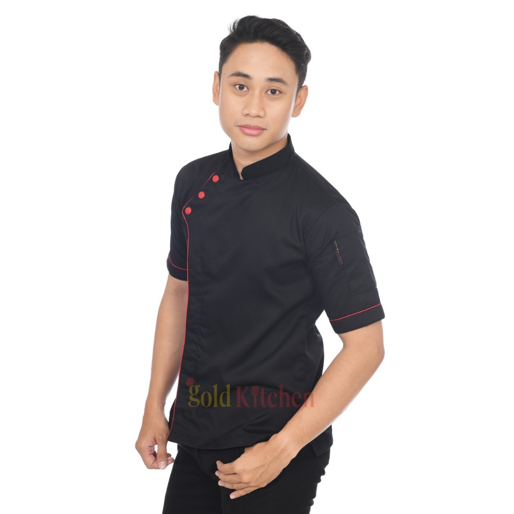 Baju Koki Chef Jacket Lengan Pendek Pria Wanita Model Style Bahan Drill