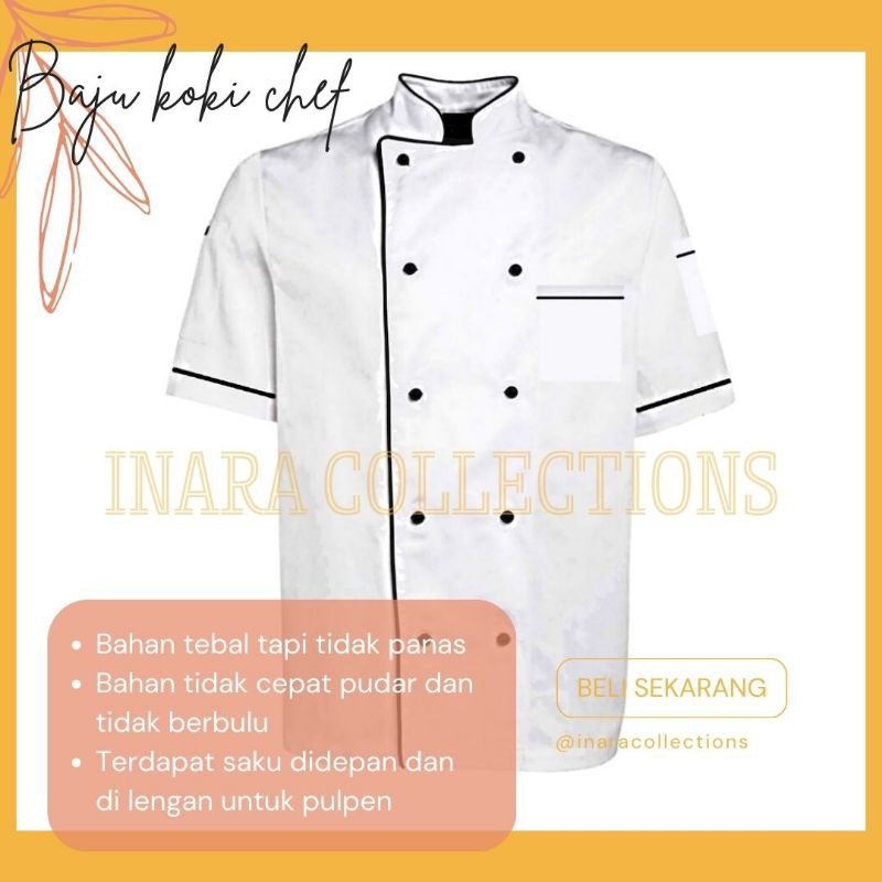 Baju Seragam Koki Chef lengan pendek Jacket Uniform UNISEX pria wanita American Drill premium
