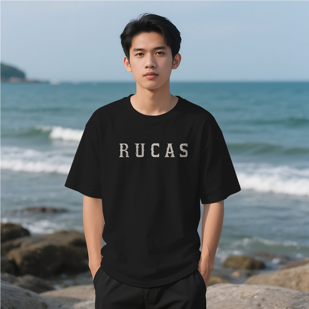 RUCASS Kaos Distro 100% katun Tee Baju Pria Streetwear Hitam Putih original 100% Pakaian Berkualitas