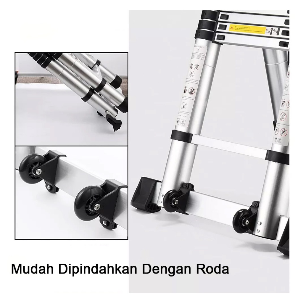 BOWEITI TANGGA LIPAT ALUMINIUM TELESKOPIK DOUBLE TELESCOPIC LADDER 4.4M/5M/5.6M/6.4M/8M