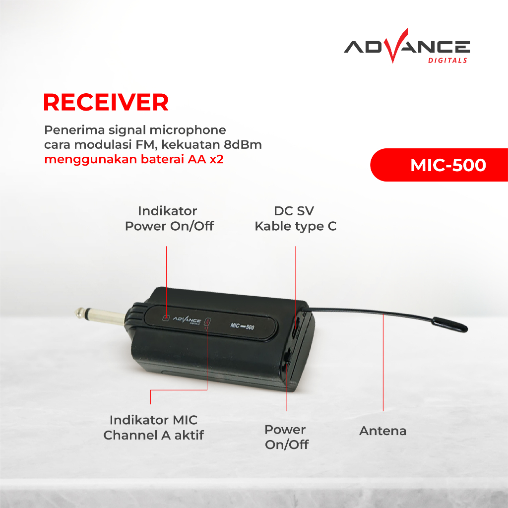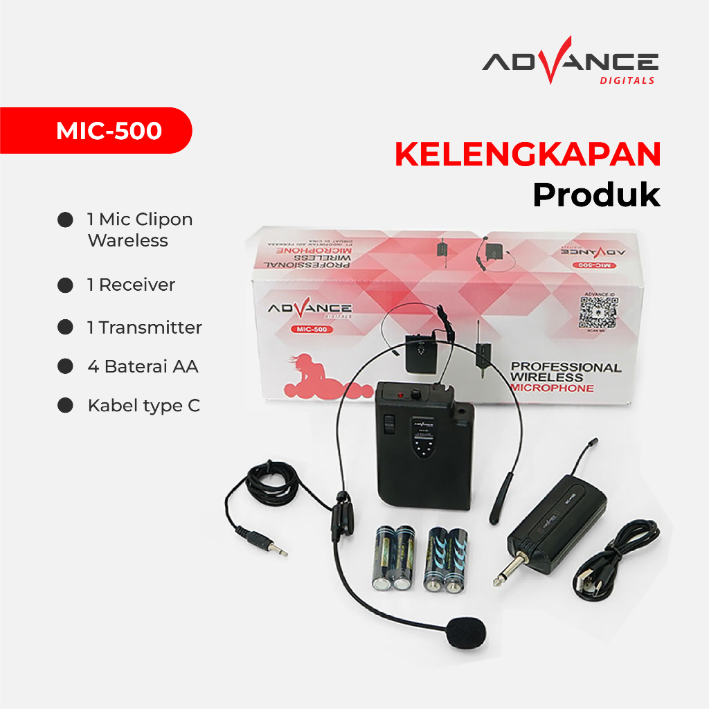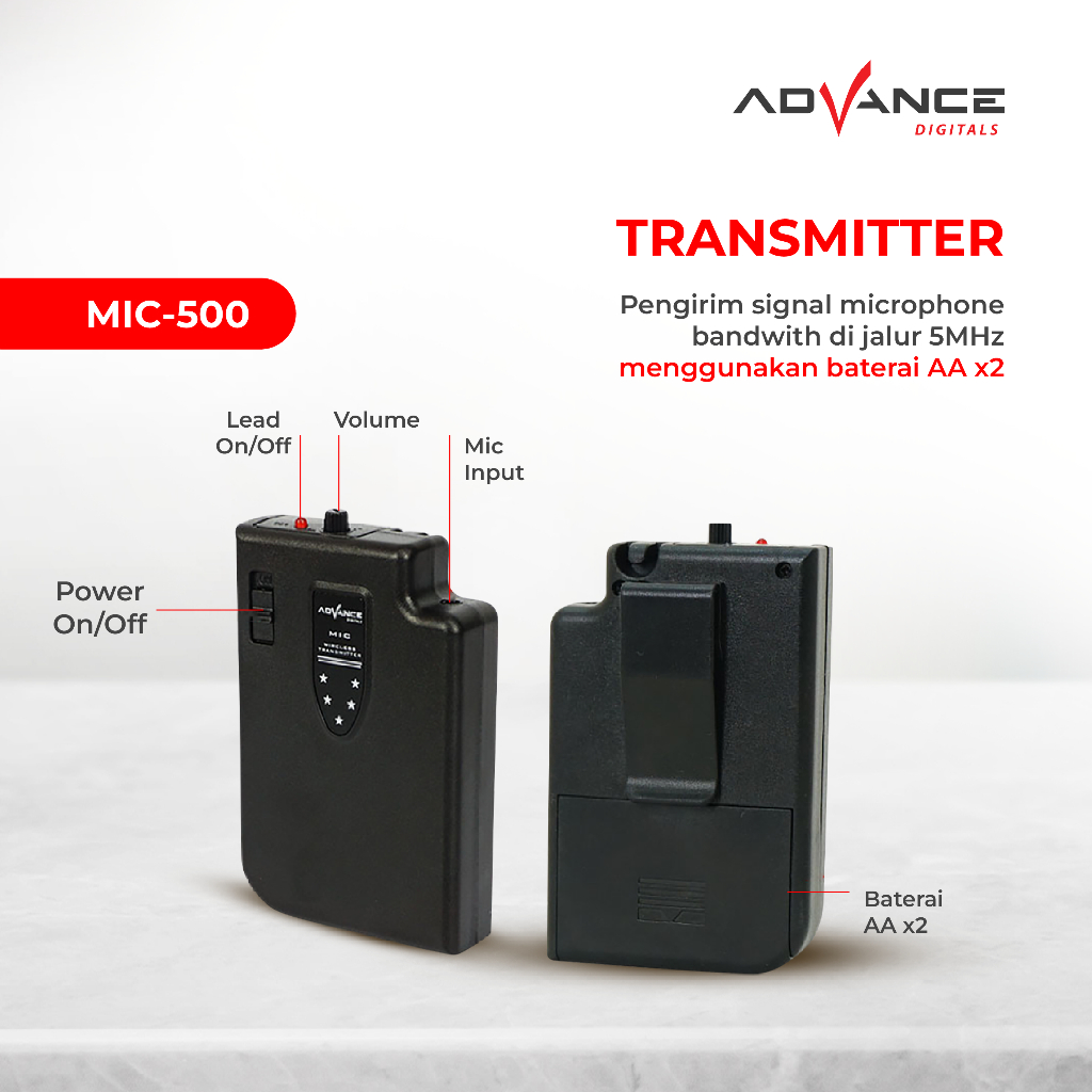 Advance Mic Wireless Clip On MIC-500 & D2 Bando Eksternal Suara Jernih Garansi Resmi 1 Tahun