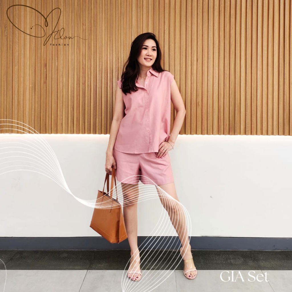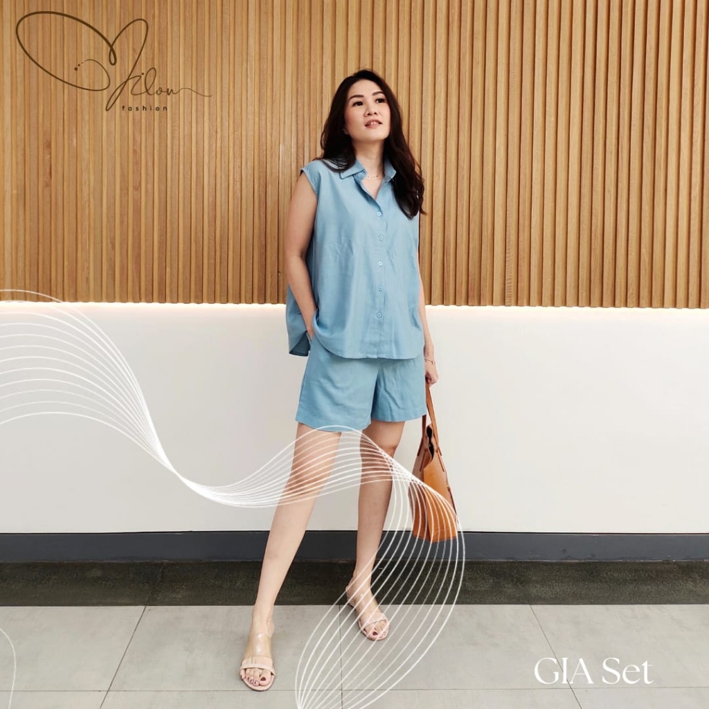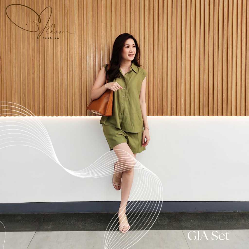 Gia set setelan kemeja linen wanita fashion premium quality
