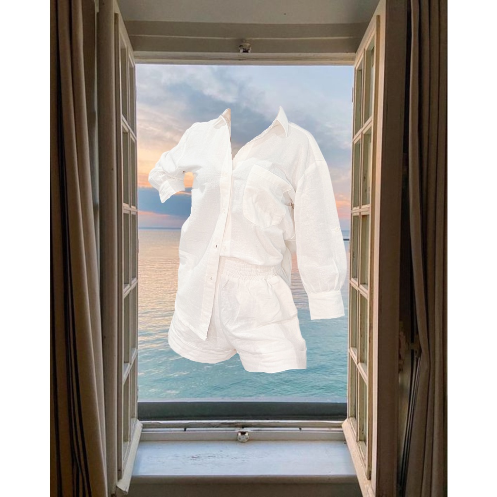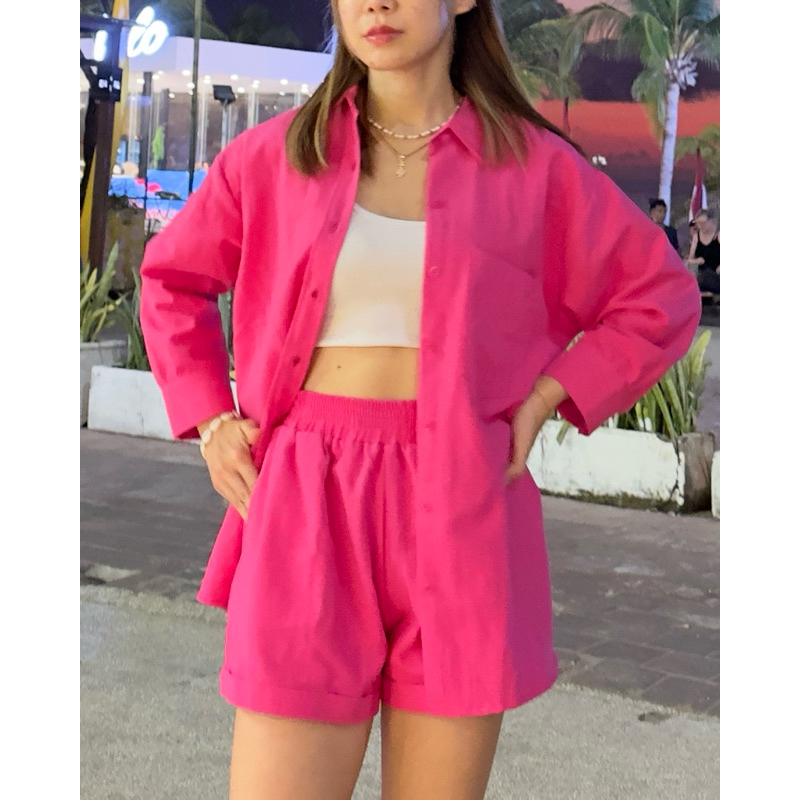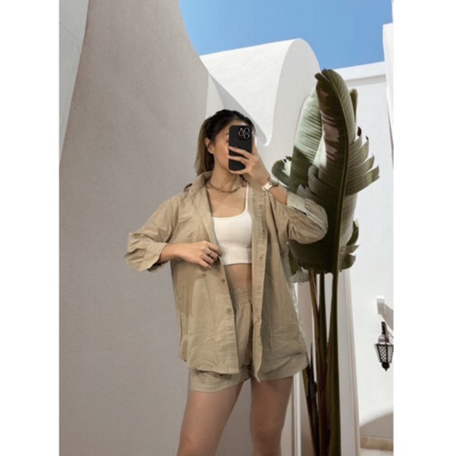 VENTOFF Bella Linen Set (Shirt & Shorts) - Set Kemeja Premium Pantai Celana Pendek Linen Wanita