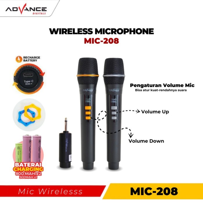 Advance Mic-208 Dual Microphone Wireless Anti Noise Garansi Resmi 1 Tahunn