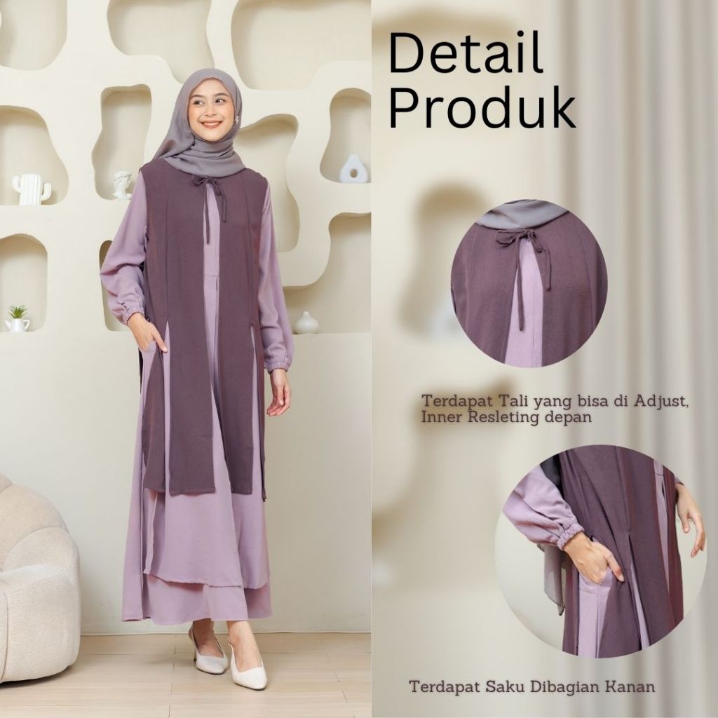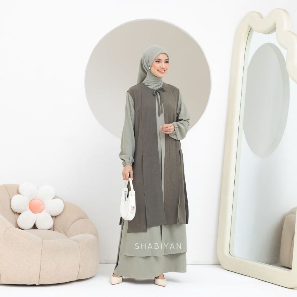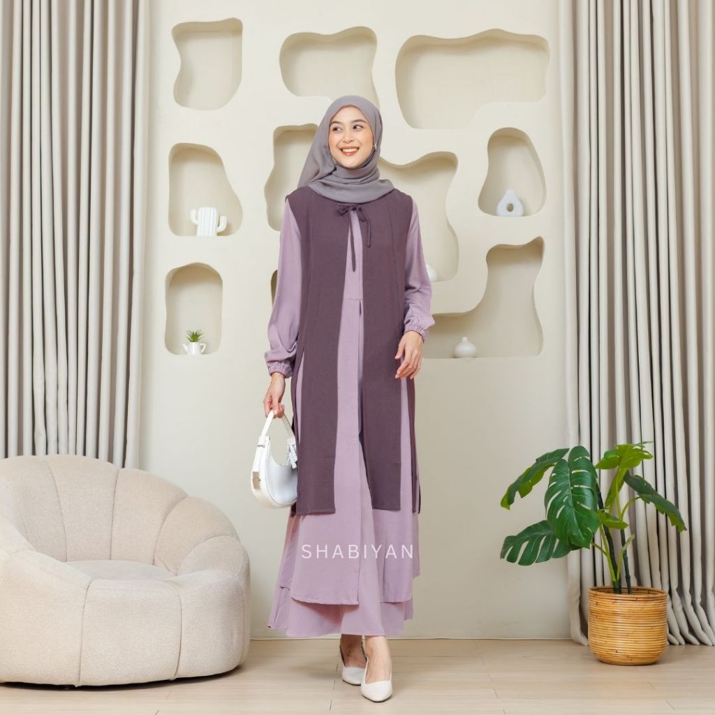 SHABIYAN-601 Gamis Wanita Cardigan Panjang Set Outer Inner Lepas Pasang XS - XXL
